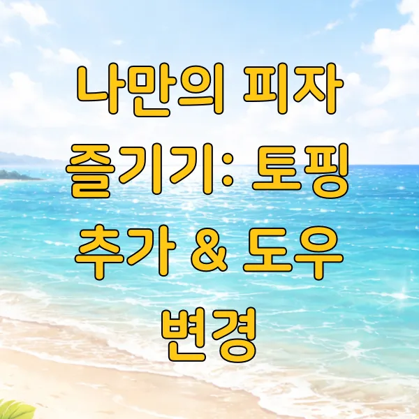 기본 메뉴에 좋아하는 토핑을 추가해서 나만의 맞춤 피자를 만들 수 있어요. 예를 들어, '슈퍼슈프림'에 새우 토핑을 추가하면 더욱 푸짐하게 즐길 수 있죠. 토핑 추가 비용은 보통 2천원 ~ 4천원 정도 추가된다고 생각하시면 됩니다.